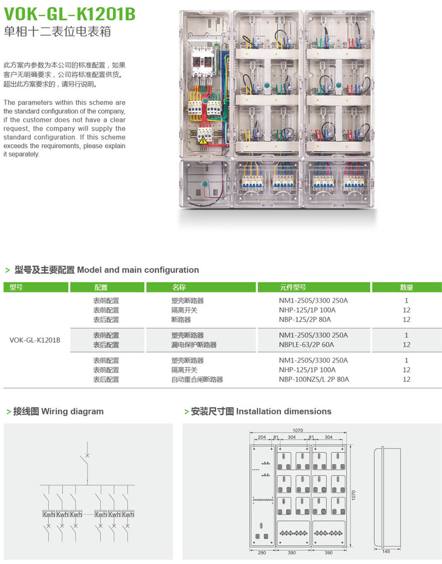 VOK-GL-K1201B 单相十二表位电表箱