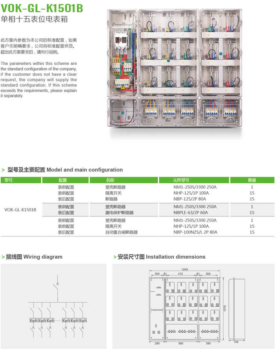 VOK-GL-K1501B 单相十五表位电表箱