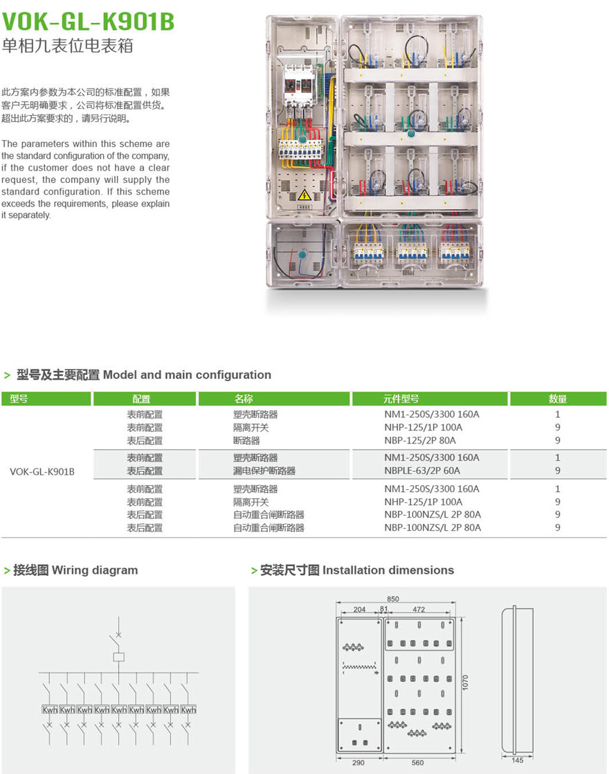VOK-GL-K901B 单相九表位电表箱