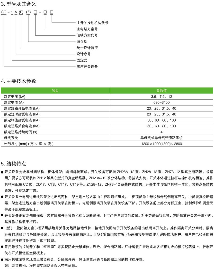 GG1A(F)-12型固定户内交流金属封闭开关设备