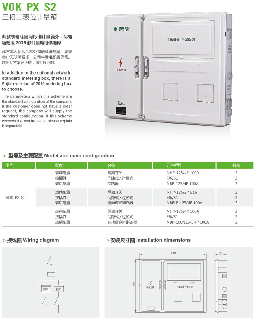 VOK-PX-S2 三相二表位计量箱