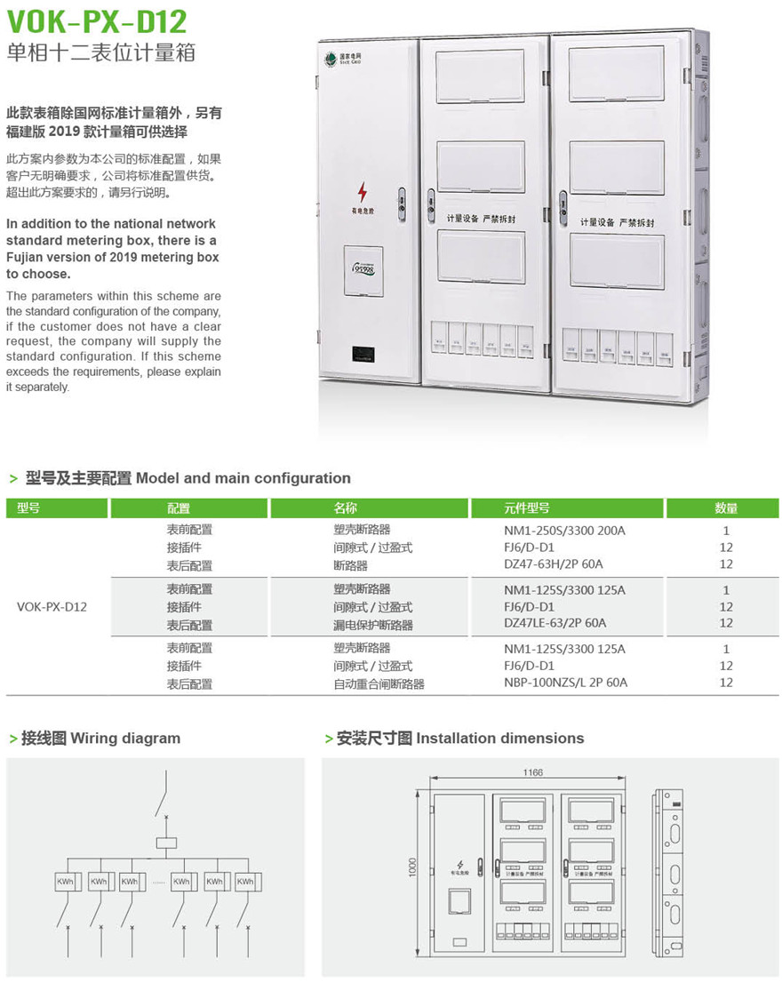 VOK-PX-D12 单相十二表位计量箱