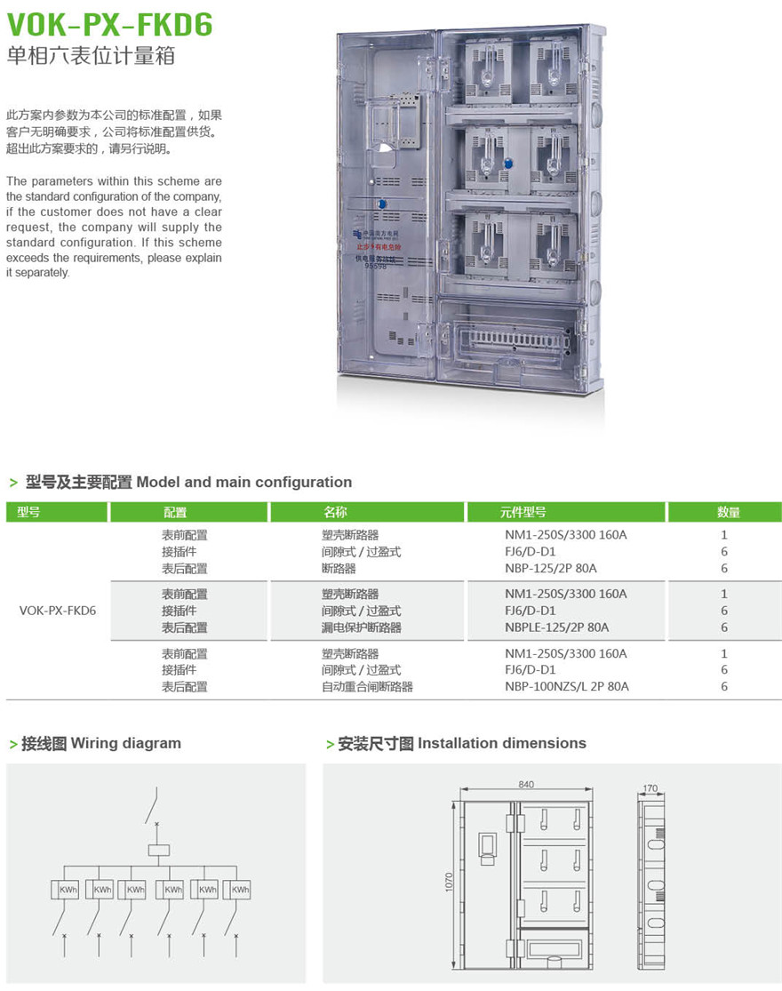VOK-PX-FKD6 单相六表位计量箱